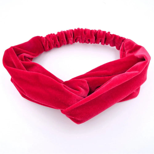 Serre tête velours avec fleur en satin - rouge foncé -