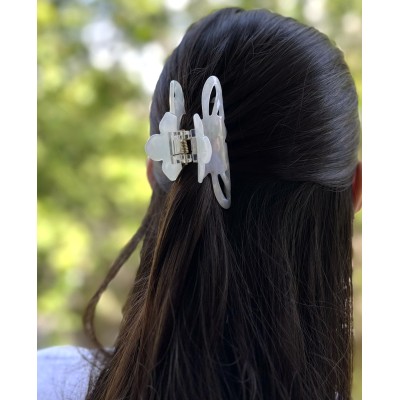 Pince cheveux fleur en acétate, motif nacre, 8cm