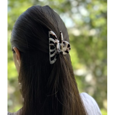 Pince cheveux crabe ajourée en acétate, motif tortue.
