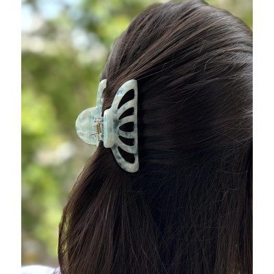 Pince cheveux crabe ajourée en acétate, motif nacre.