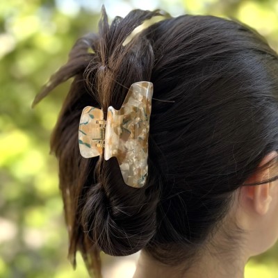 Pince à cheveux femme effet nacré en polyrésine solide, chic et pratique pour toutes vos coiffures.