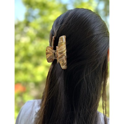 Pince cheveux crabe résine acrylique fait main, décor marbre.